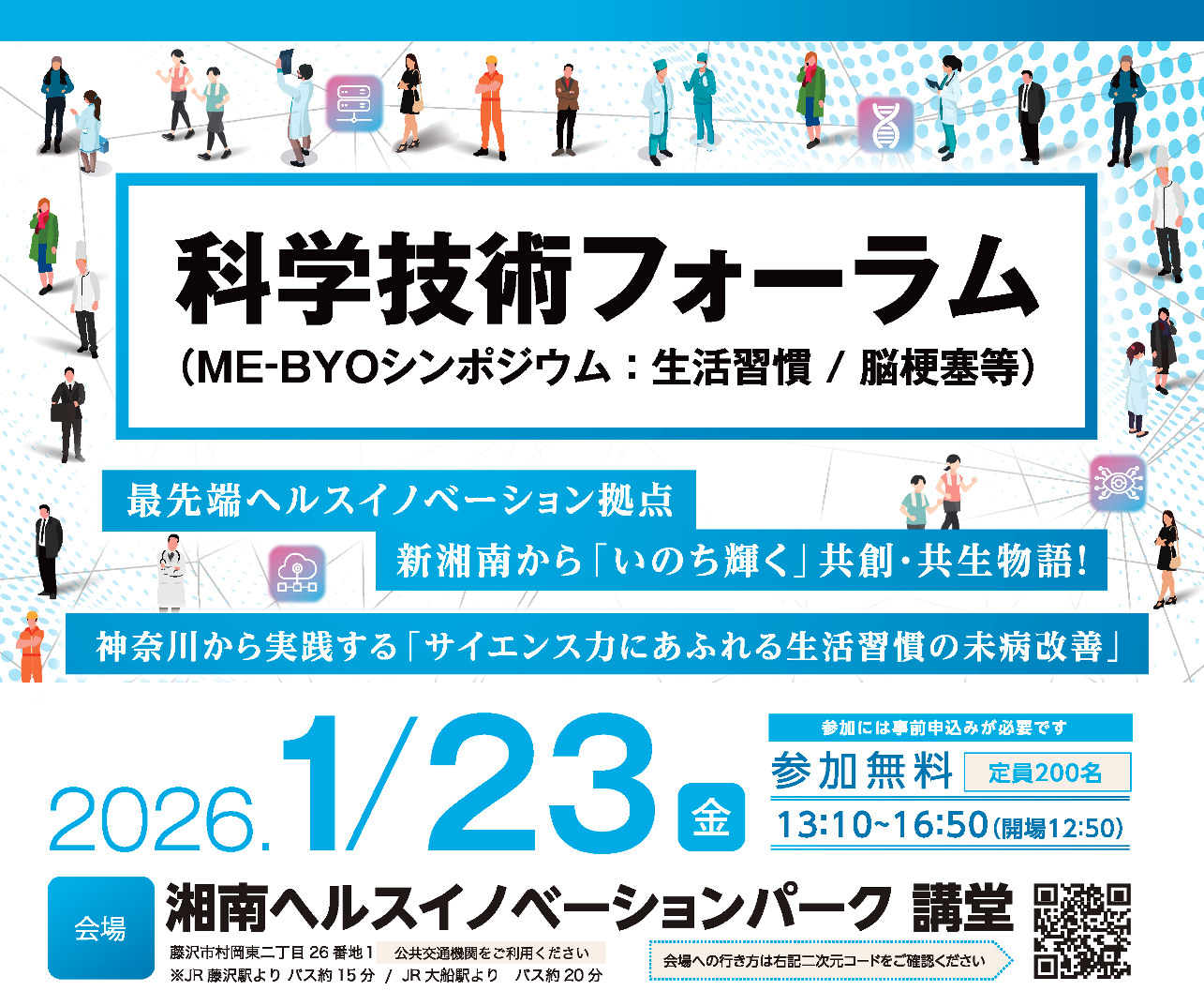 2026年1月23日に開催される、神奈川県主催「科学技術フォーラム(ME-BYOシンポジウム:生活習慣/脳梗塞等)」の運営事務局を弊社・ファンメディケーションが担当します。